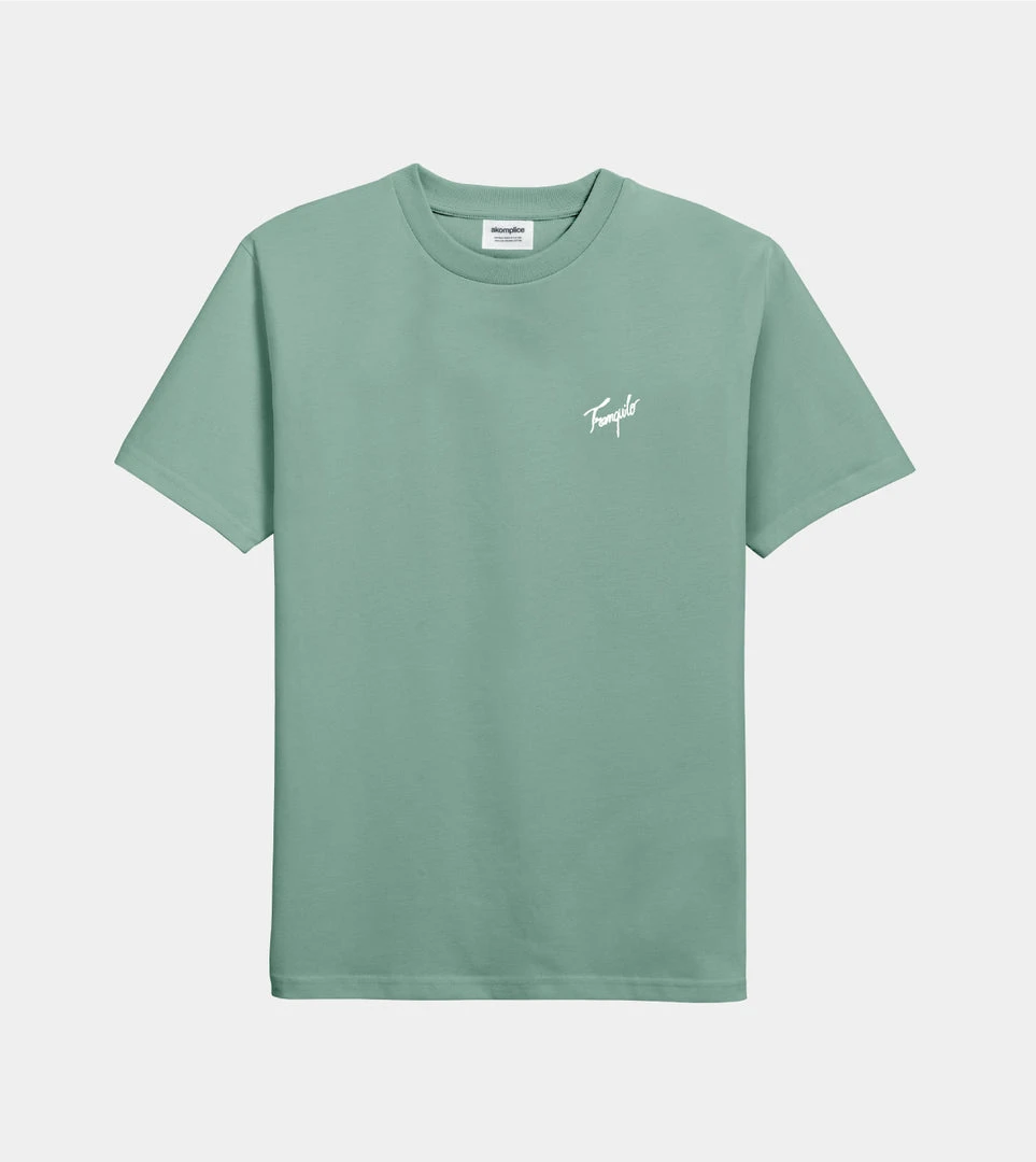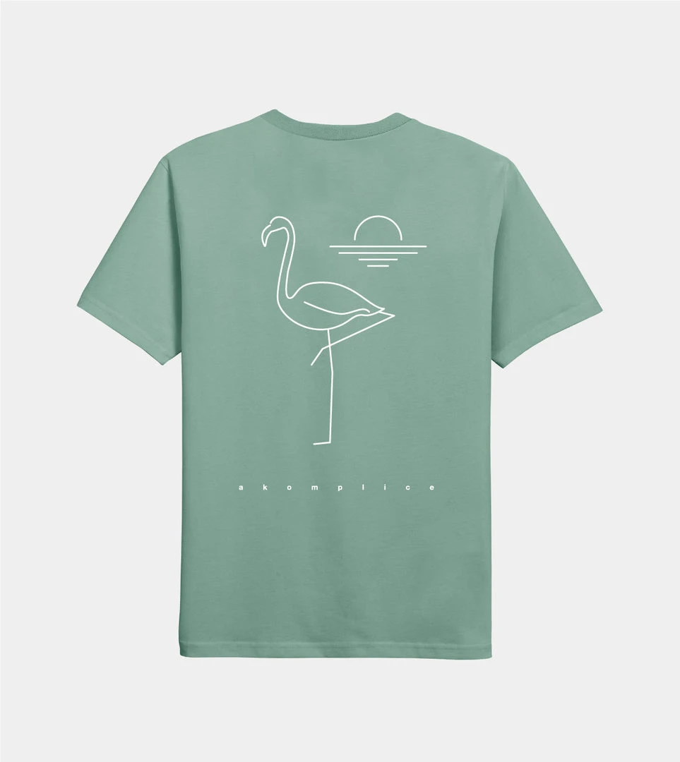 Akomplice reminds us to stay calm and cool during trying times. Tranquilo logo on the left chest and classic flamingo artwork across the back.
