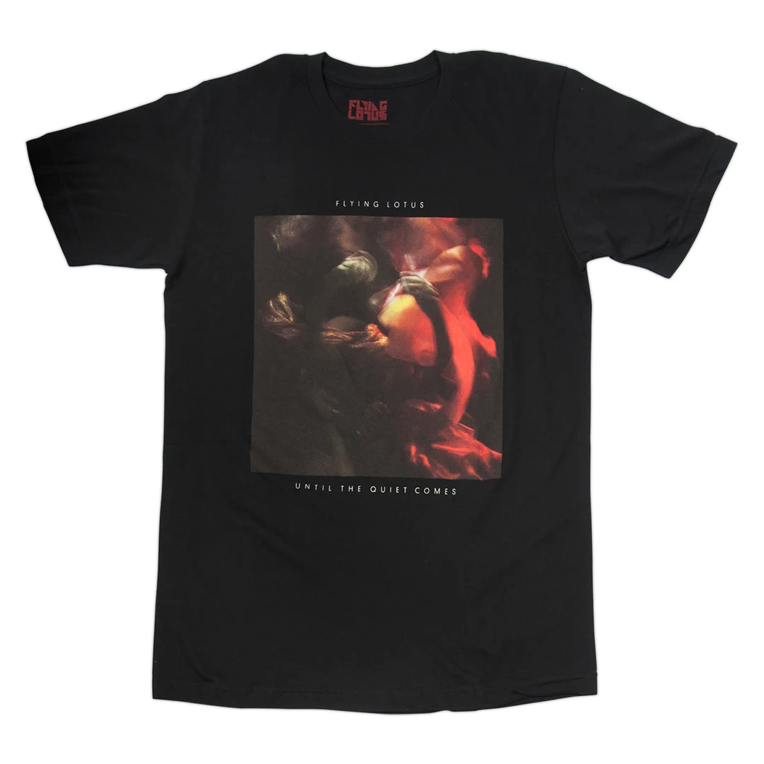 Flying Lotus “Until The Quiet Comes” Album Art tee by Stephen Serrato. Seven color screen print on a black tee.