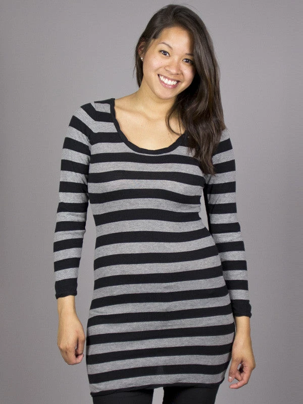 Fitted yarn dyed stripe double layer dress with twisting details and metal logo tag.