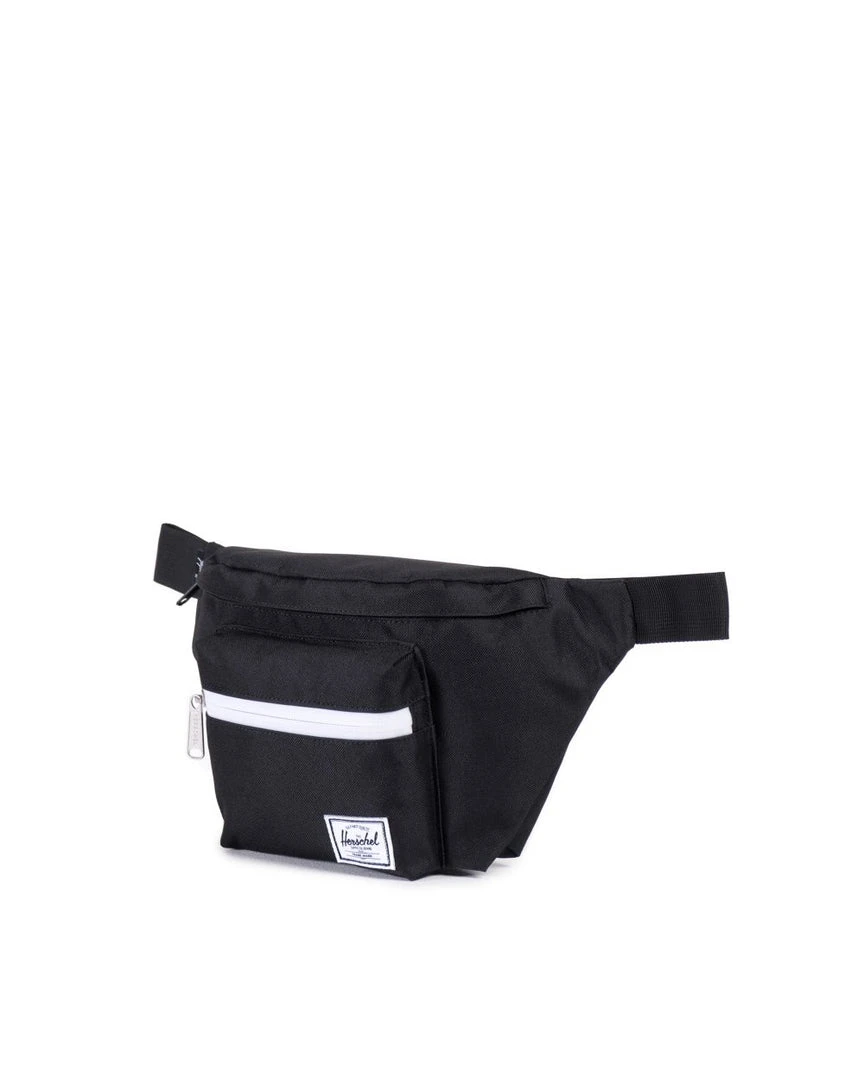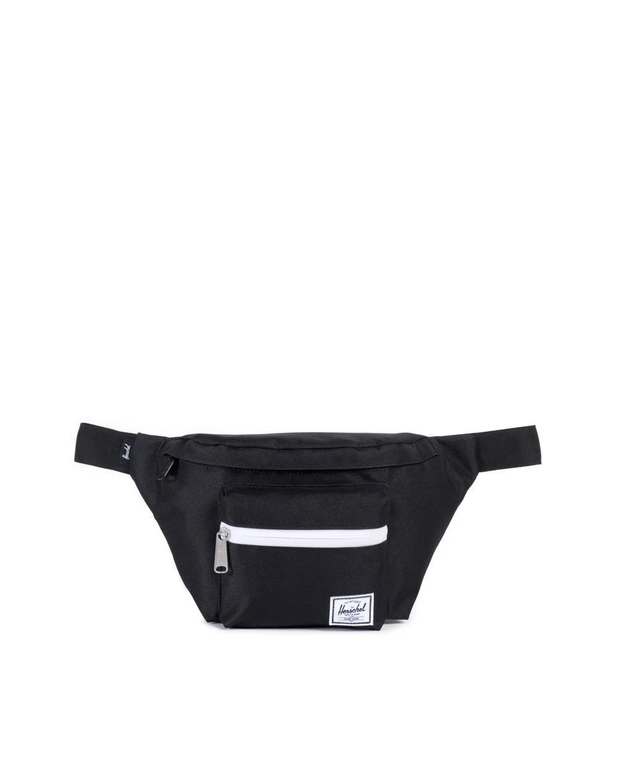 Stay hands free and on the move with this stylish Seventeen hip pack in classic black. Waterproof zippered main compartment and front storage pocket. Clip fastened adjustable strap that can be worn over the waist or shoulder. Signature striped liner and branded woven label.