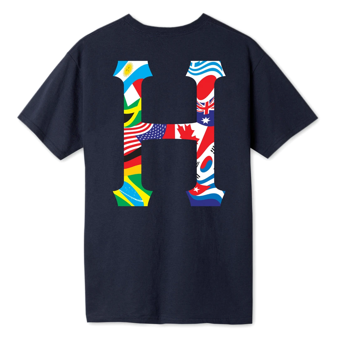 HUF is bringing back a classic with the Global Trip Tee. Features the Classic H logo on the chest and across the back of a french navy tee.
