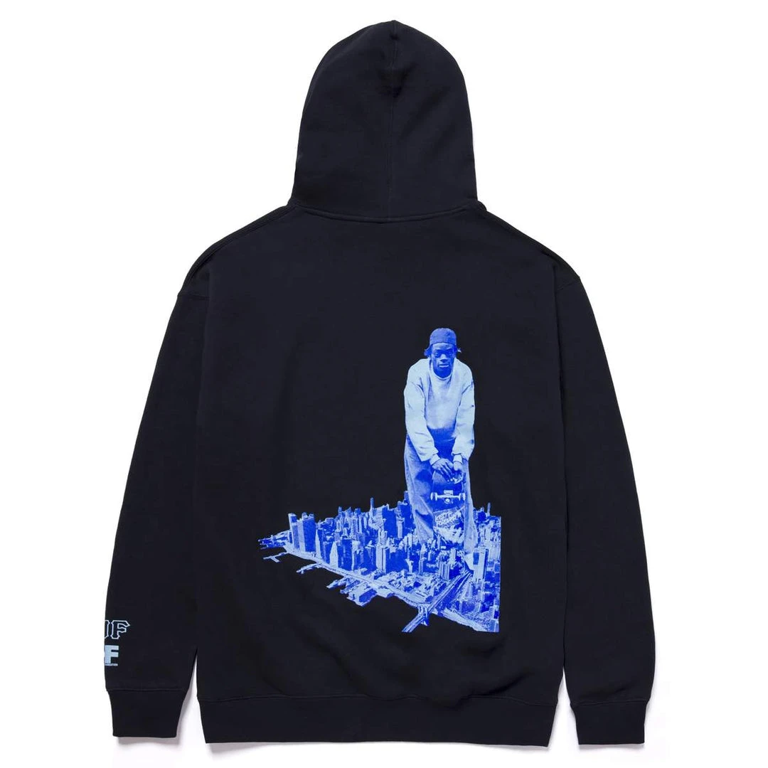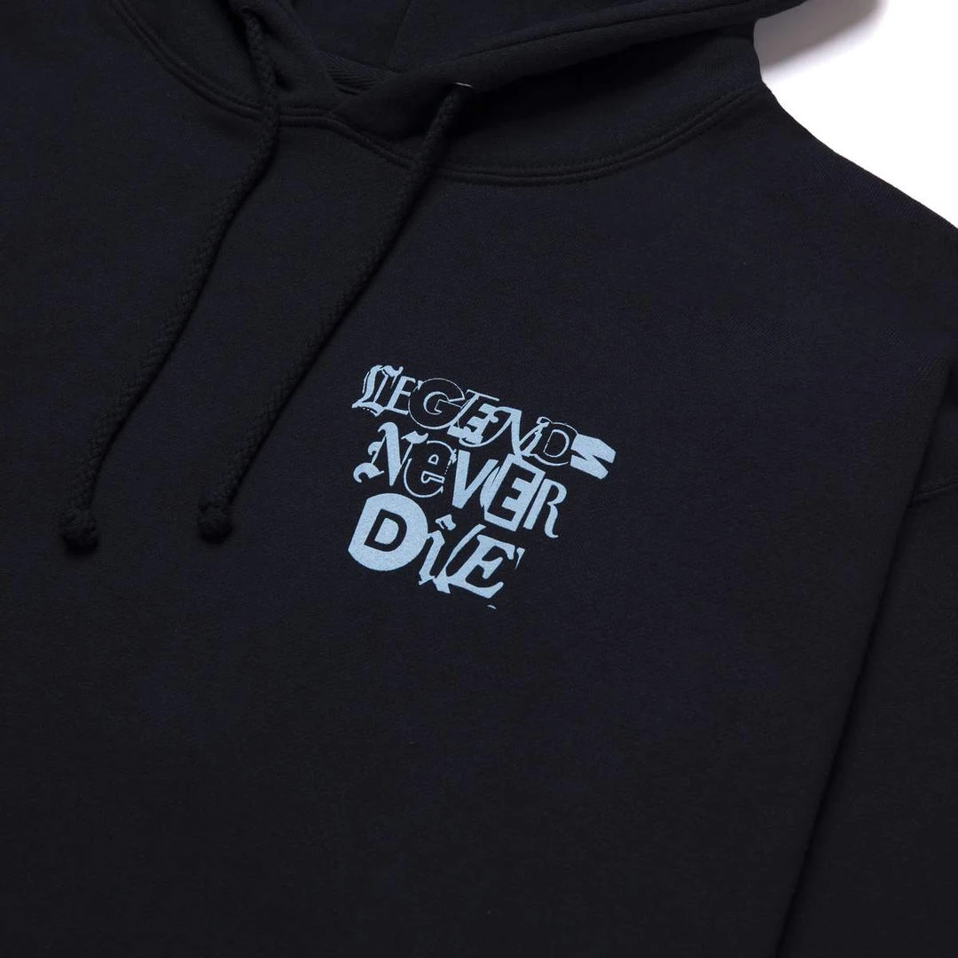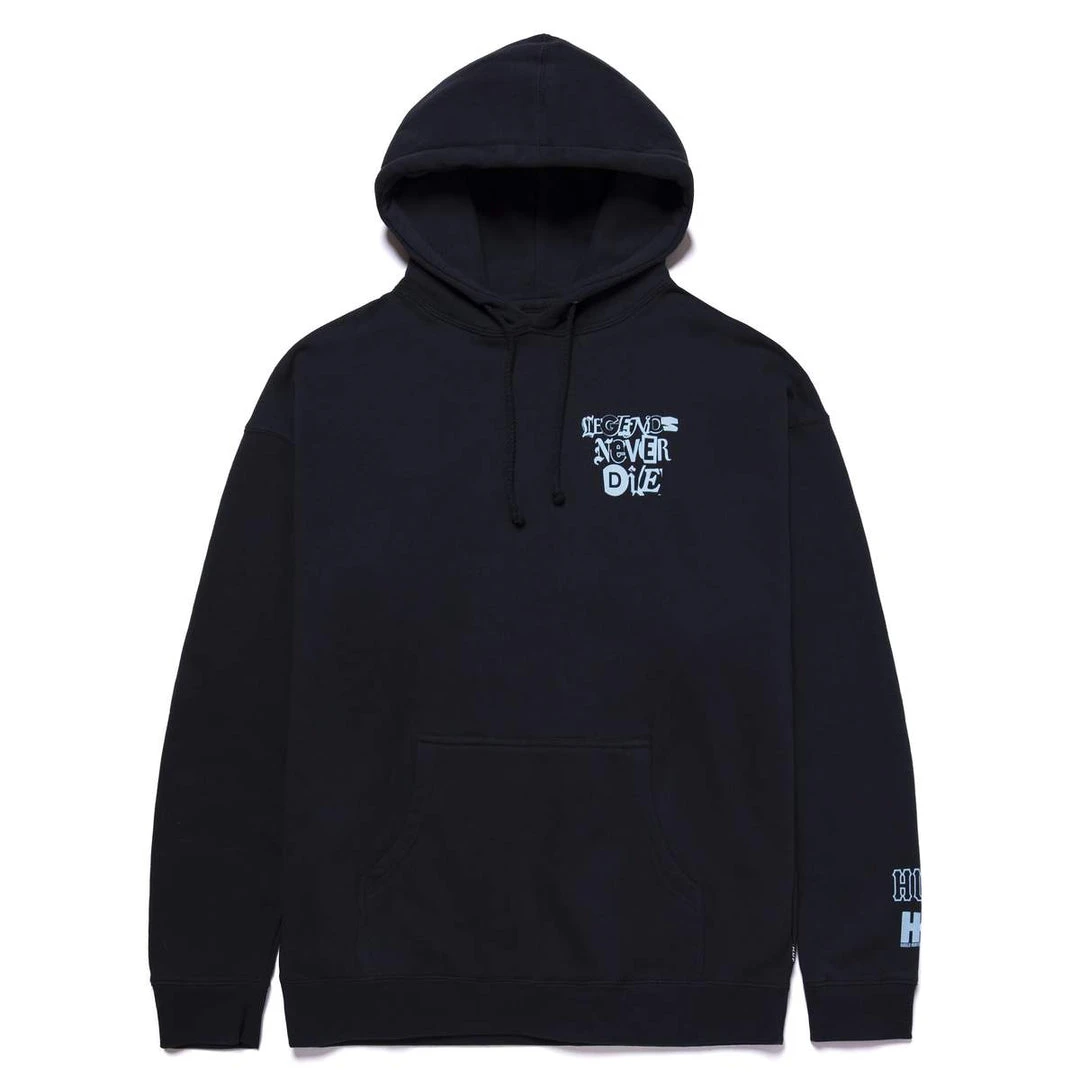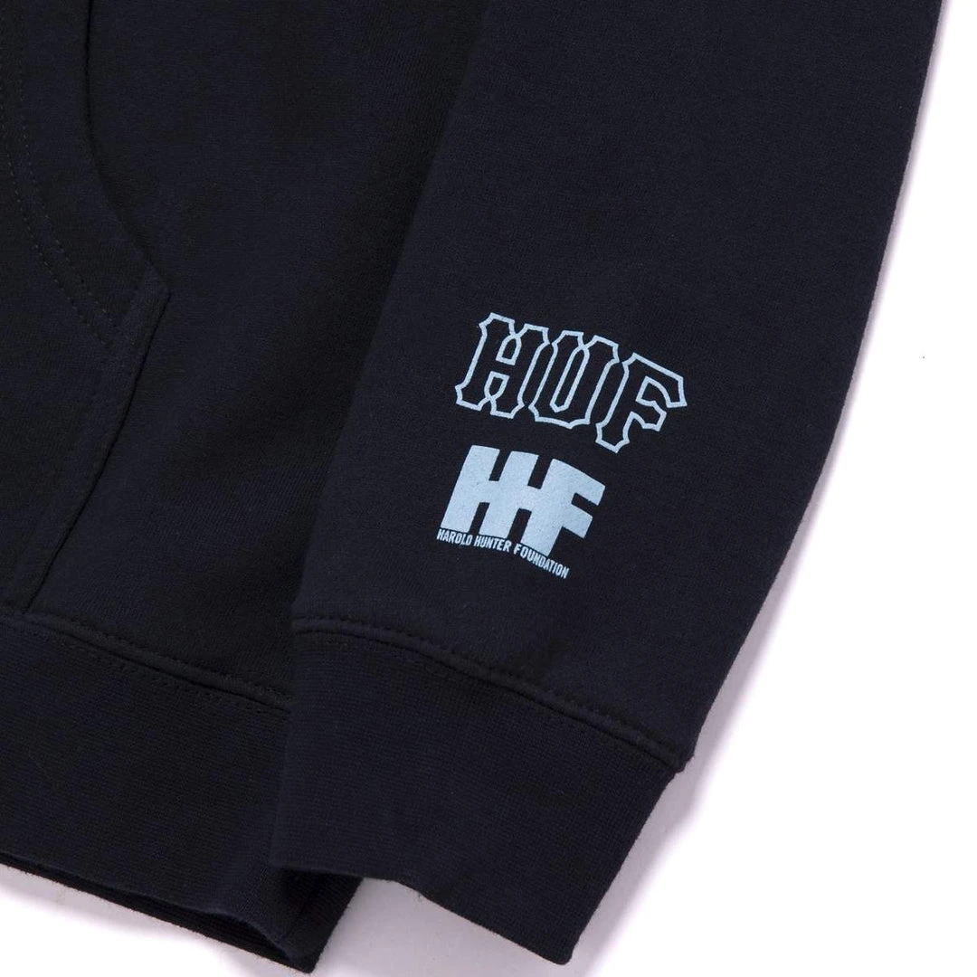 “RIP Harold Hunter…legends never die”. HUF teams with the Harold Hunter Foundation to pay homage to the legendary skater. This limited edition collection supports underprivileged NYC youth by highlighting skateboarding. Features “Legends Never Die” slogan at left chest, portrait of Harold on the back, and HUF x HHF logs on the left wrist. Super soft pullover hoodie with kangaroo pocket and adjustable drawcord hood.