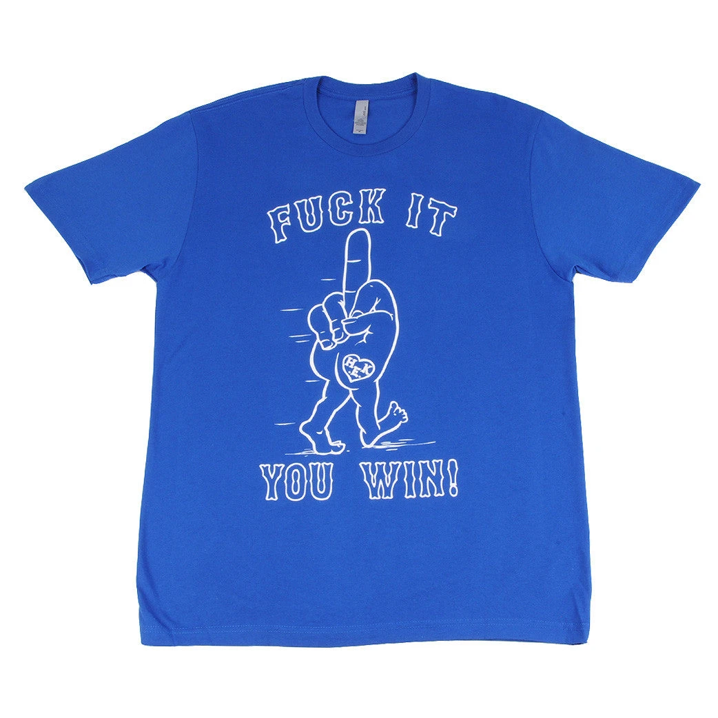 100% Soft Cotton. Royal blue with “Fuck it, you win” in white print.