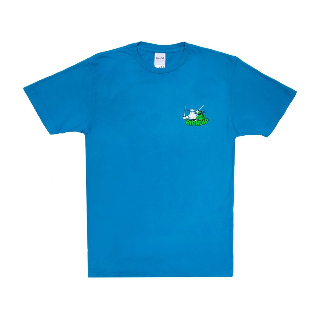 RIPNDIP’s nod to America’s most famous teenage turtle crimefighters. Features Nermal and crew replicating the legendary martial artists with a custom screen print on the left chest and across the back.
