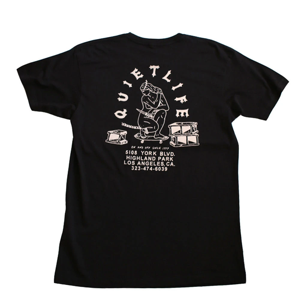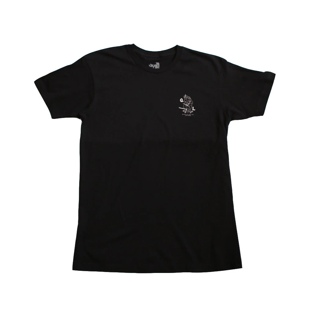 Art by QL Guest Artist Eric Kenney (aka Heavy Slime) On and off since 1997. Custom skate shop screen print on the left chest and across the back of a premium (4.3 oz thin fit) tee.