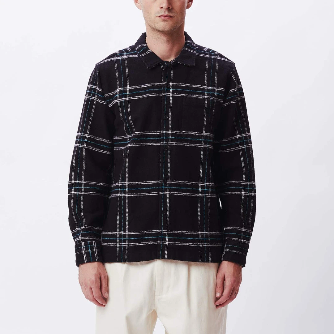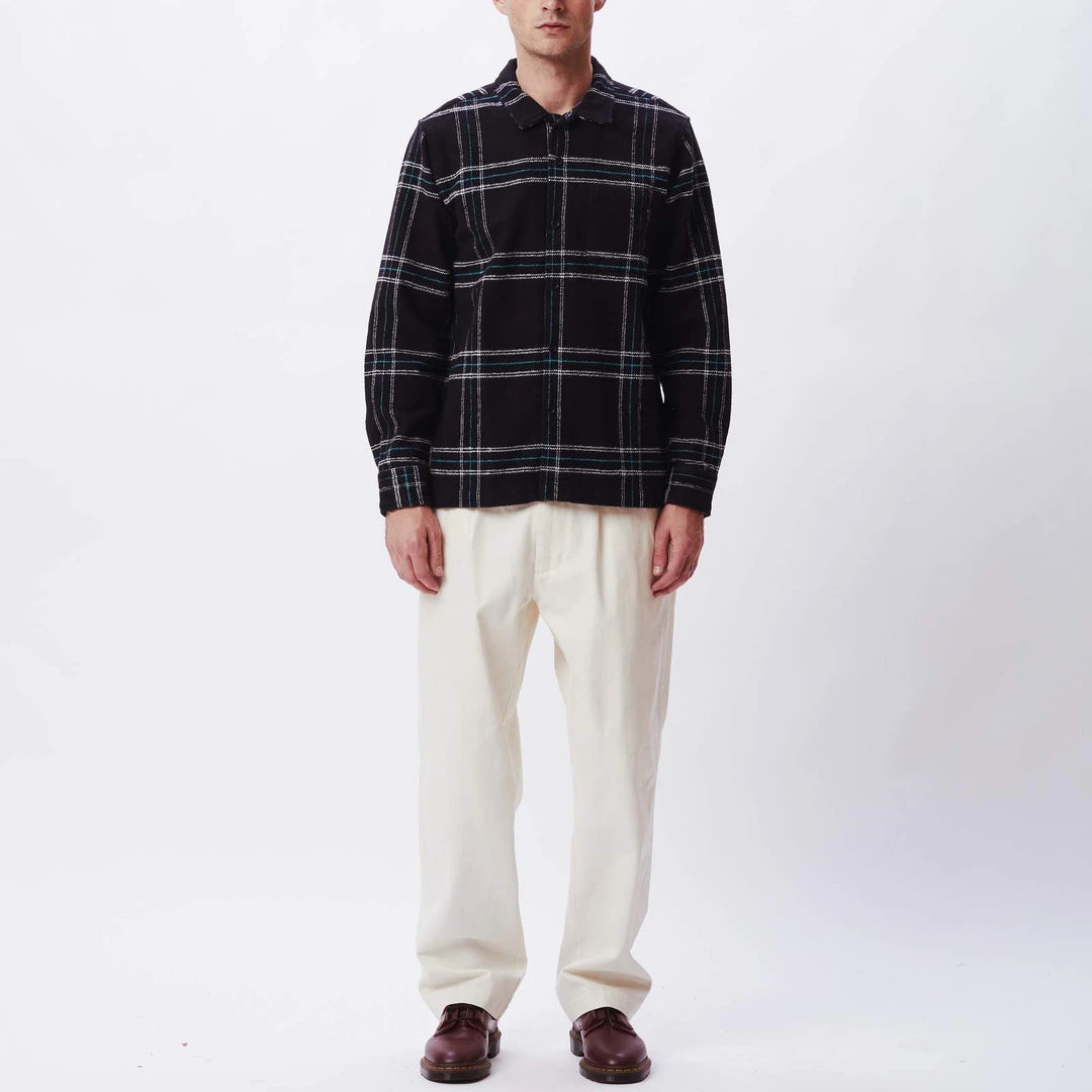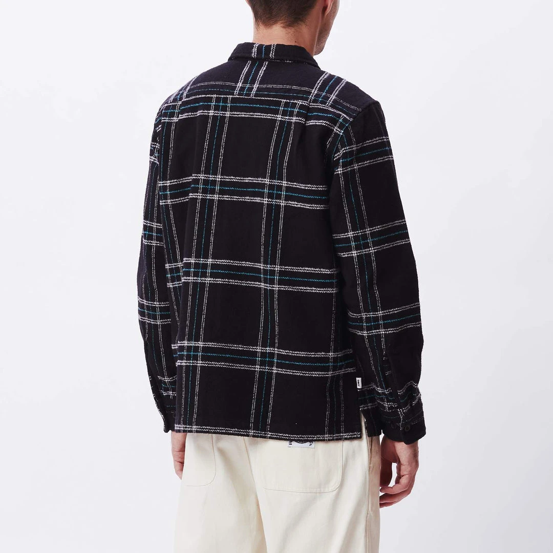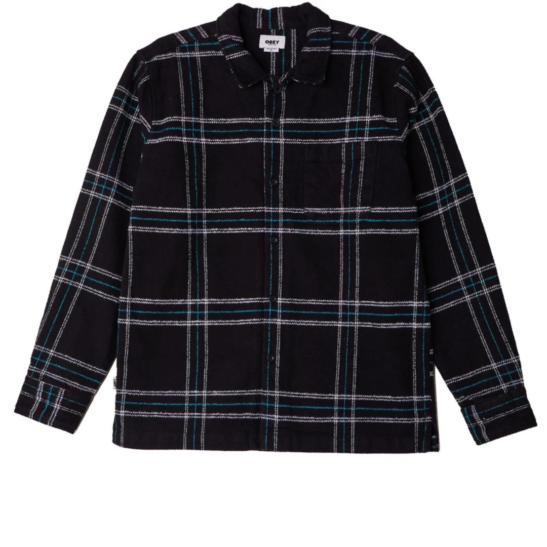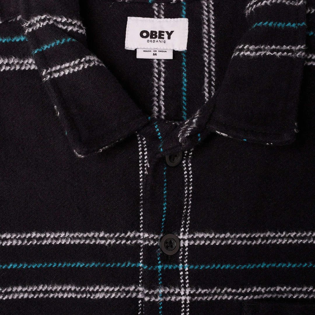 Regular fit extra heavyweight plaid shirt. Made of soft flannel fabric for extra warmth. Custom OBEY label on side and solid black buttons.