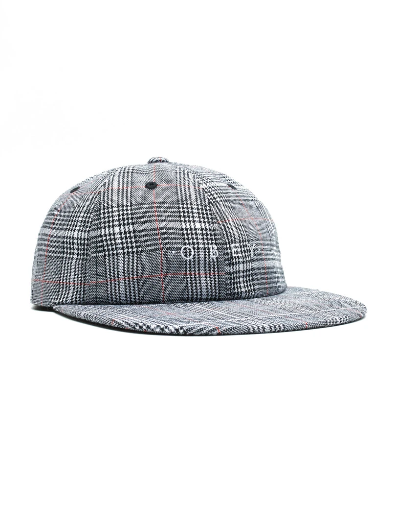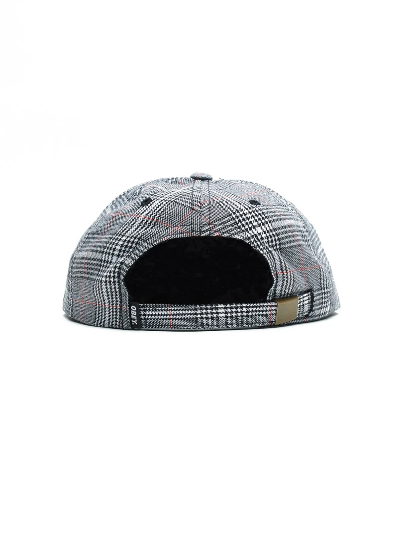 Mid profile cotton poly strapback. Custom plaid fabric, direct logo embroidery, adjustable closure.