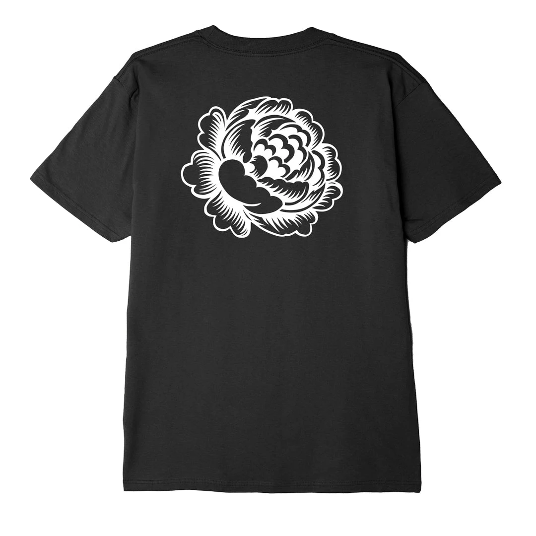 Black tee with large flower print design on the back and small left chest “OBEY” print. Regular fit classic tee in heavyweight cotton jersey.