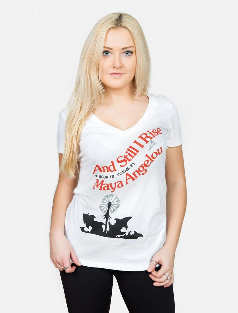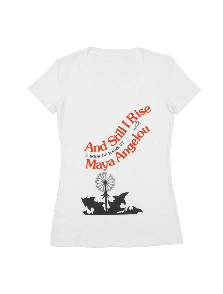 From Maya Angelou’s collection of poetry published in 1978. Cotton/poly v-neck tee with a distressed, softened screen print.