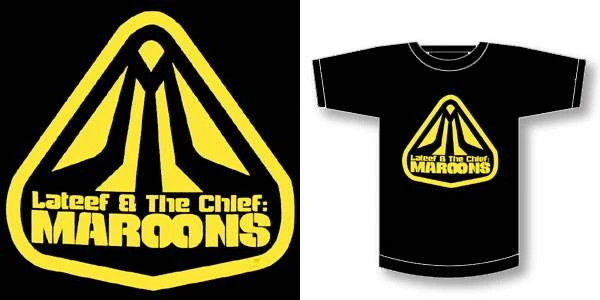 Lateef the Truthspeaker and The Chief’s Maroons Shirt. Rock it and you can rhyme like them too… well, maybe not. But at least you can represent for them by rocking this phat shirt! Printed on Gildan Activewear shirts.