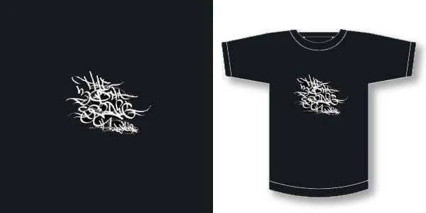 “The 30th Song” written in some mad crazy lettering with “Mr. Dibbs” written below in the same mad crazy font. Printed on Gildan Heavyweight shirts.
