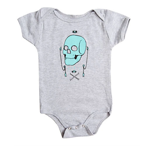 P.O.S. Glover Skull Infant One Piece in Heather Grey.
