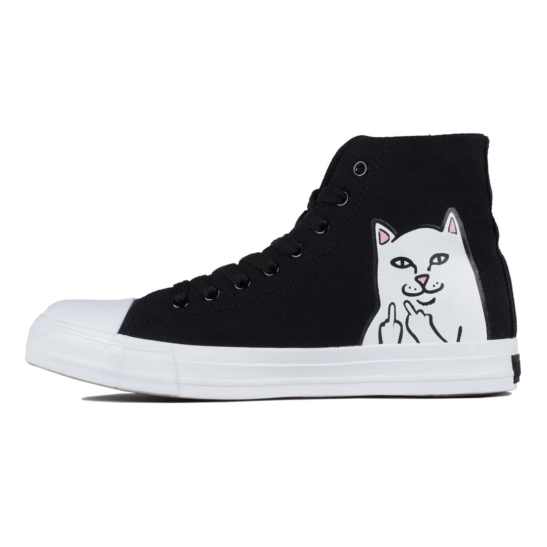 Style in style all season long with Lord Nermal! Features Lord Nermal on a custom black high top with embroidered RIPNDIP logo. Nermal Leaf tread pattern on bottom of shoe. Available in U.S. Men’s Sizing.