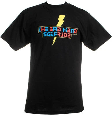 Lightning bolt striking through boxed in lettering. Reads “The 3rd Hand, RJD2” Design printed in support of 2007 tour for new release, “The Third Hand”.