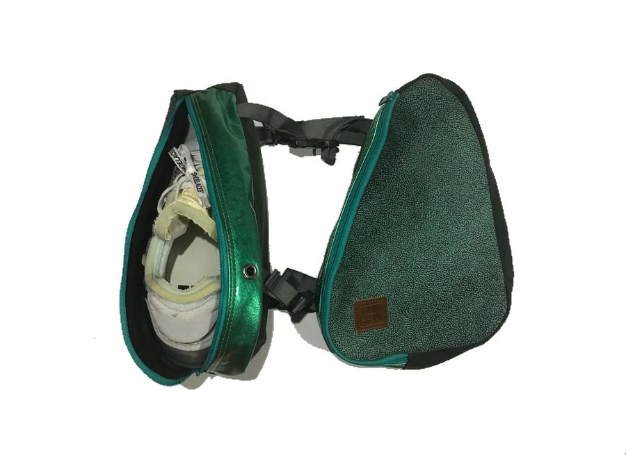 Part of Solepack’s Made in the USA collection of SP-1s with upgraded materials. The Asphalt Greens SP-1 is highlighted with a leather elephant print front panel and patented vinyl zipper panel. Limited edition.