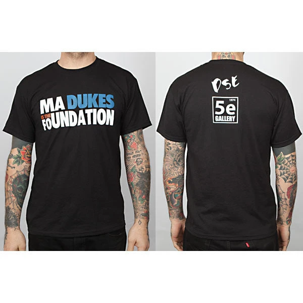 ‘Ma Dukes is the Foundation’ printed across the front side of chest. DSE and 5e Gallery logos printed at the back side of neck.