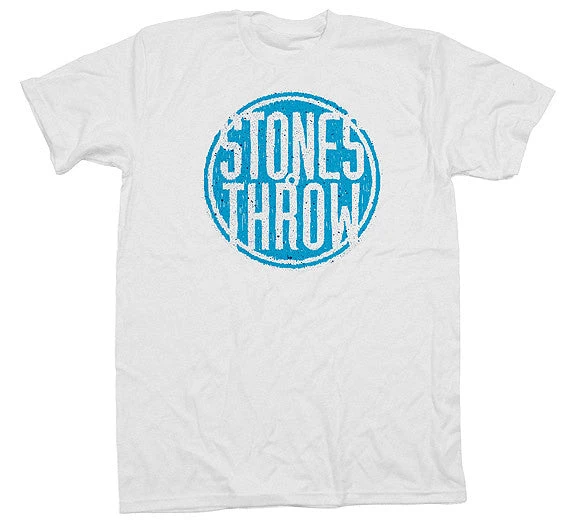Aqua hand-drawn logo and blue speckle printed on Ei-lo tee. Logo illustrated by Mike Pargas.