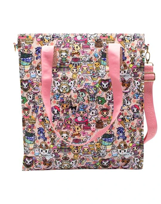 – Handles feature signature jacquard-woven tokidoki logo and glitter accents.