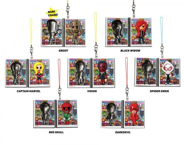 tokidoki teams up with Marvel for the ultimate comic book collection! Marvel’s most popular characters have been given a tokidoki twist to create 14 collectible heroes! Includes Captain America, Iron Man, Black Panther, Thor, Hulk, Black Widow, Groot (rare chase piece), Loki, Spiderman, Red Skull, Gwen, Captain Marvel, Vision, and Daredevil.