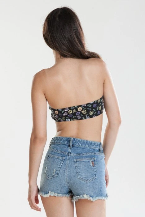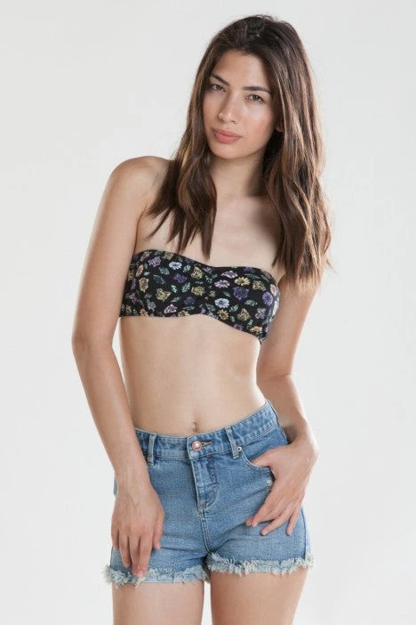 Floral printed bandeau elasticized on the top and bottom. Perfect for layering under tanks!